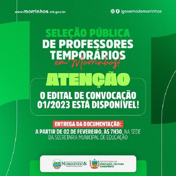 O Edital de Convocação da Seleção Pública de Professores Temporários, já está disponível!