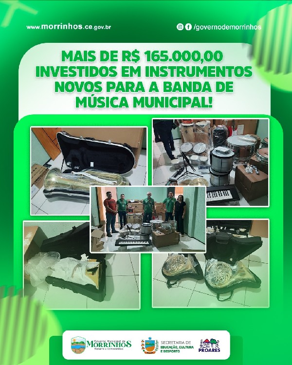 O Governo Municipal de Morrinhos, através da Secretaria de Educação, Cultura e Desporto, realizou a aquisição de instrumentos e equipamentos novos para a Banda de Música Municipal.