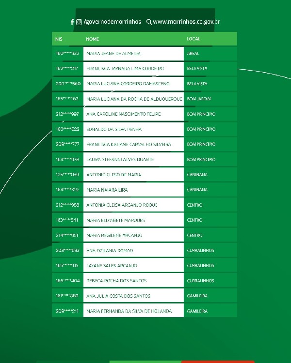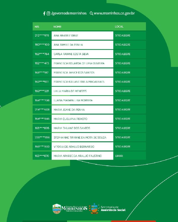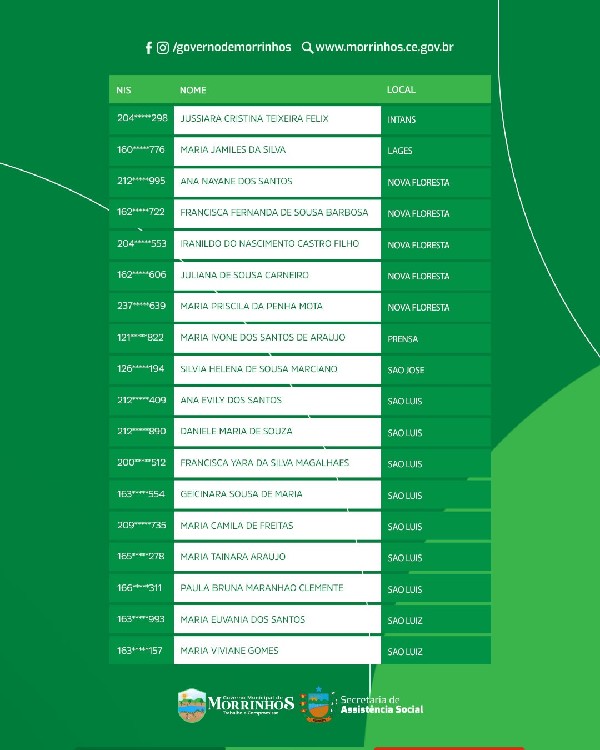 O Governo Municipal de Morrinhos, por meio da Secretaria Municipal de Assistência Social, informa que já está disponível a lista dos beneficiários do Programa Bolsa Família.
